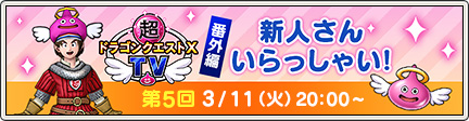 3/11 20:00~21:30 超ドラゴンクエストXTV 番外編「第5回 新人さん いらっしゃい!」