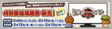 特別番組視聴券販売!「冒険者たちのホテル」 (2024/2/16 更新) - ドラゴンクエストX - 目覚めし冒険者の広場