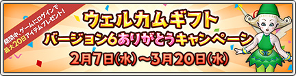 3/20まで ウェルカムギフト バージョン6ありがとうキャンペーン