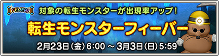 終了:5:59まで 対象の転生モンスターが出現率アップ! 「転生モンスターフィーバー」開催!