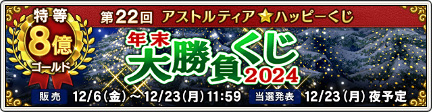 12:00~12/23まで 第22回アストルティア★ハッピーくじ『年末大勝負くじ☆2024』