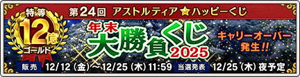 12:00~12/25まで 第24回アストルティア★ハッピーくじ『年末大勝負くじ☆2025』