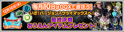 13:00頃~12/31まで 毎月10日はDQXで遊ぼう! ~最終決戦おうえんアイテムプレゼント!~